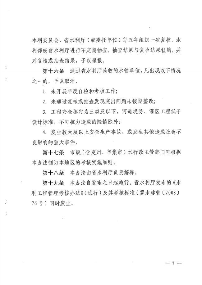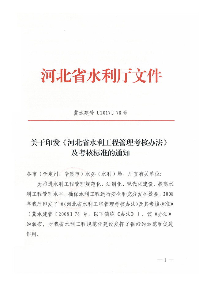 关于印发《河北省水利工程管理考核办法》
